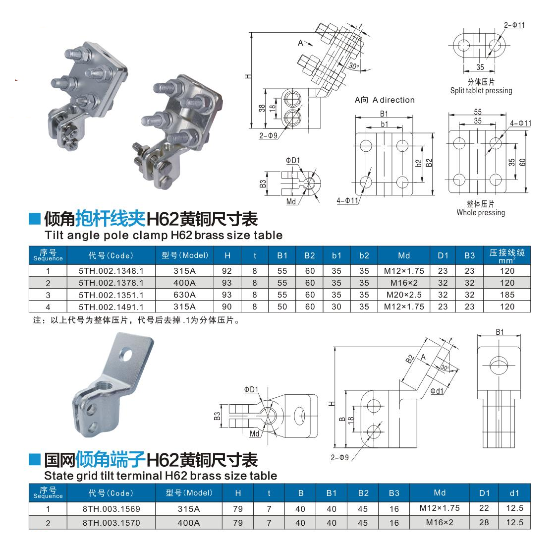 傾角抱桿線夾H62黃銅
