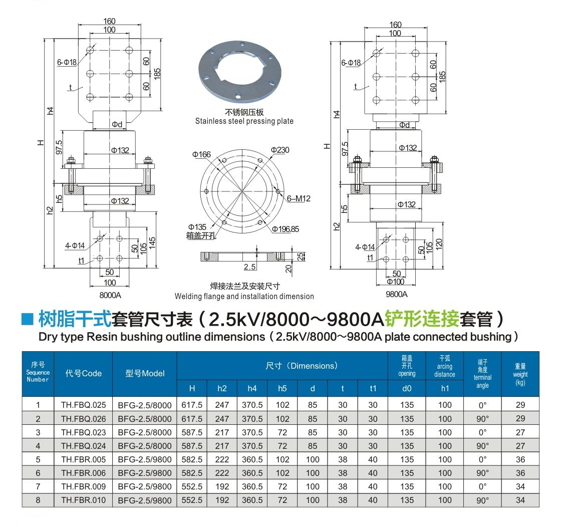 樹脂干式套管2.5kV/8000~9800A鏟形連接套管