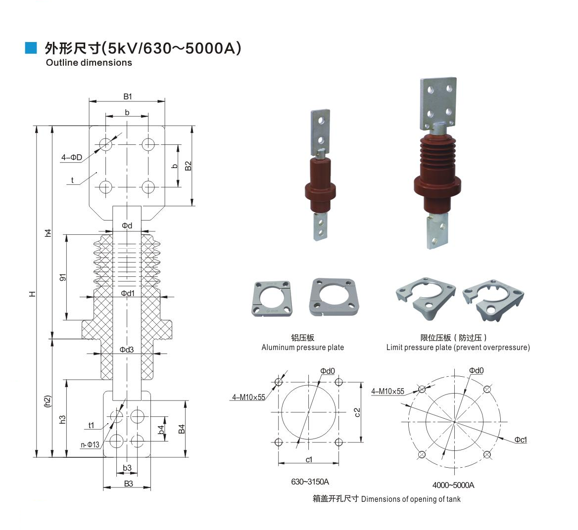 樹(shù)脂干式套管5kV/630~5000A鏟形連接套管