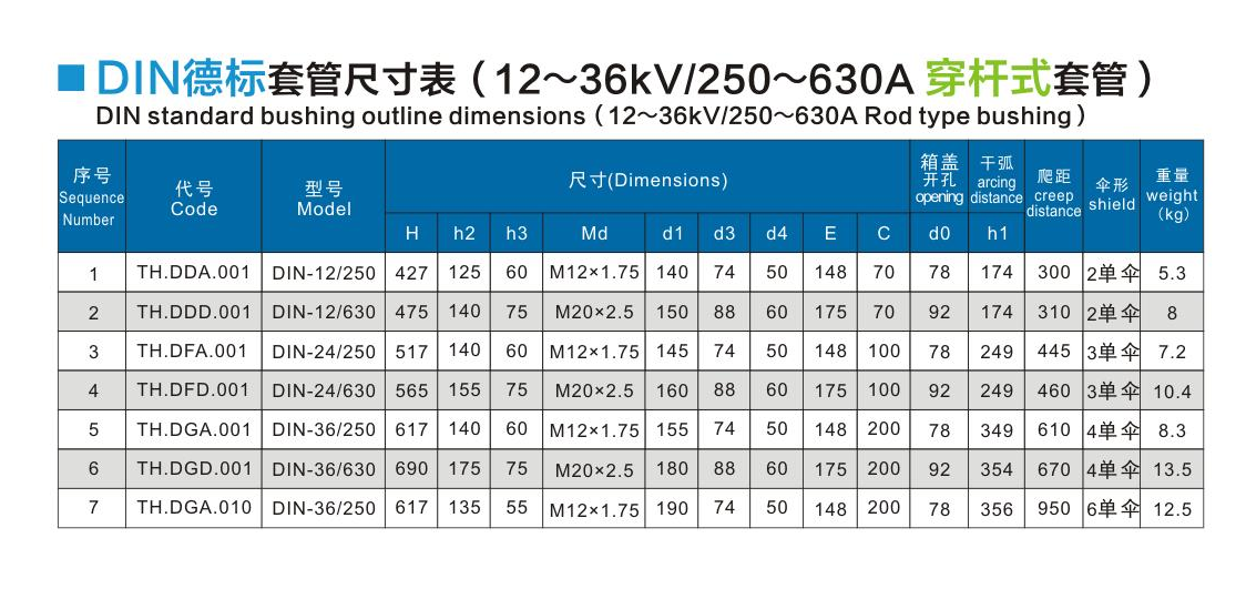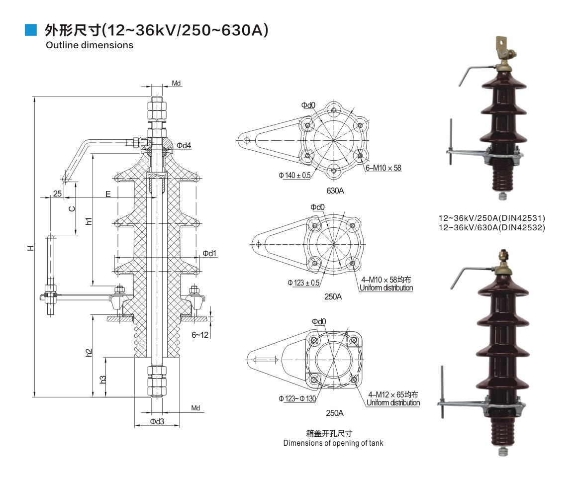 DIN德標套管12~36kV/250~630A穿桿式套管