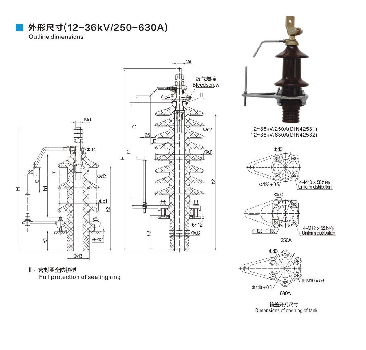 DIN德標(biāo)套管12~36kV/250~630A穿纜式套管